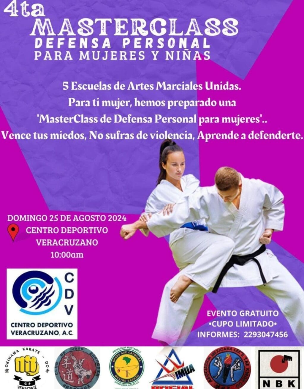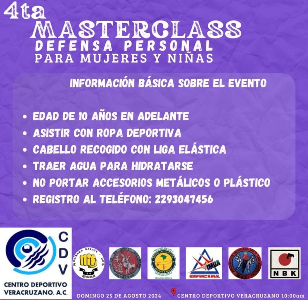 En virtud del cúmulo de ataques que están sufriendo mujeres, jovencitas y niñas, se organizó de manera gratuita la «Cuarta Masterclass de Defensa Personal»; totalmente gratuita.