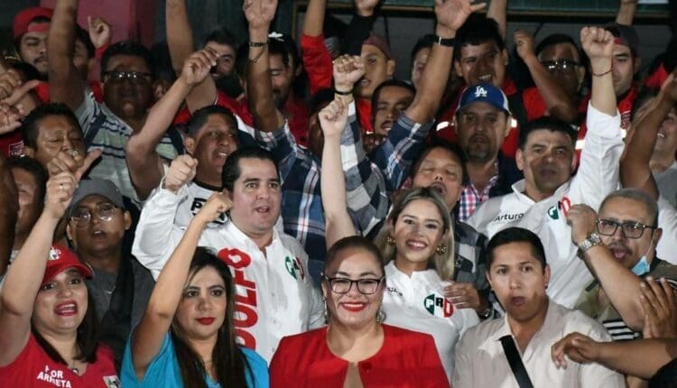 Veracruz, Ver., 21 de diciembre de 2023. El presidente del CDE del PRI en Veracruz, Adolfo Ramírez Arana, tomó protesta a Arturo Cobos Valdez, como presidente, y a Betsabé Delfín Gómez, como secretaria general del Comité Municipal del partido en Veracruz, con la presencia de la diputada federal y secretaria general del CDE, Lorena Piñón Rivera; de la regidora Belem Palmeros Exome; de la expresidenta municipal, Carolina Gudiño Corro; de la presidenta del Instituto de Formación Política Jesús Reyes Heroles Filial Veracruz, Karla Ladrón de Guevara; de la coordinadora ejecutiva de la CNOP en Veracruz, de Flor de Rocío Arrieta Méndez; así como de seccionales, distinguidos militantes y simpatizantes.