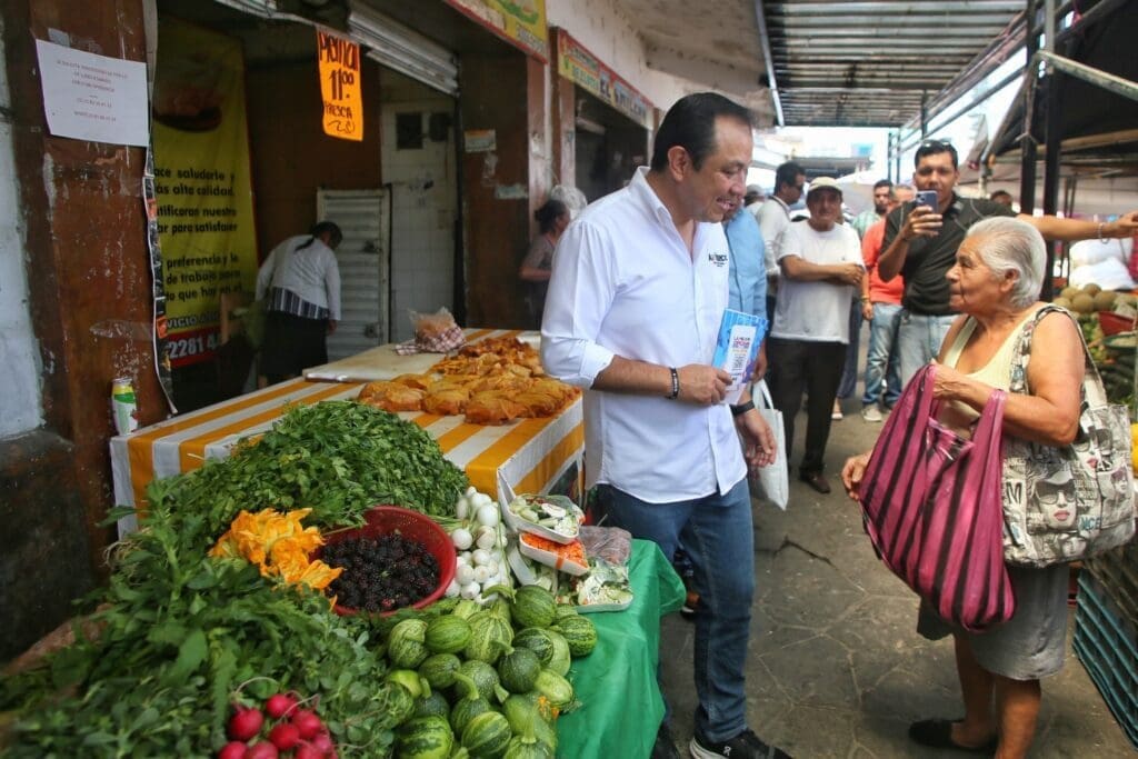 Este jueves, el candidato realizó un recorrido por el mercado San José, en donde saludó y escuchó a los locatarios, además de presentarles sus propuestas que como legislador hará en la Cámara de Diputados.