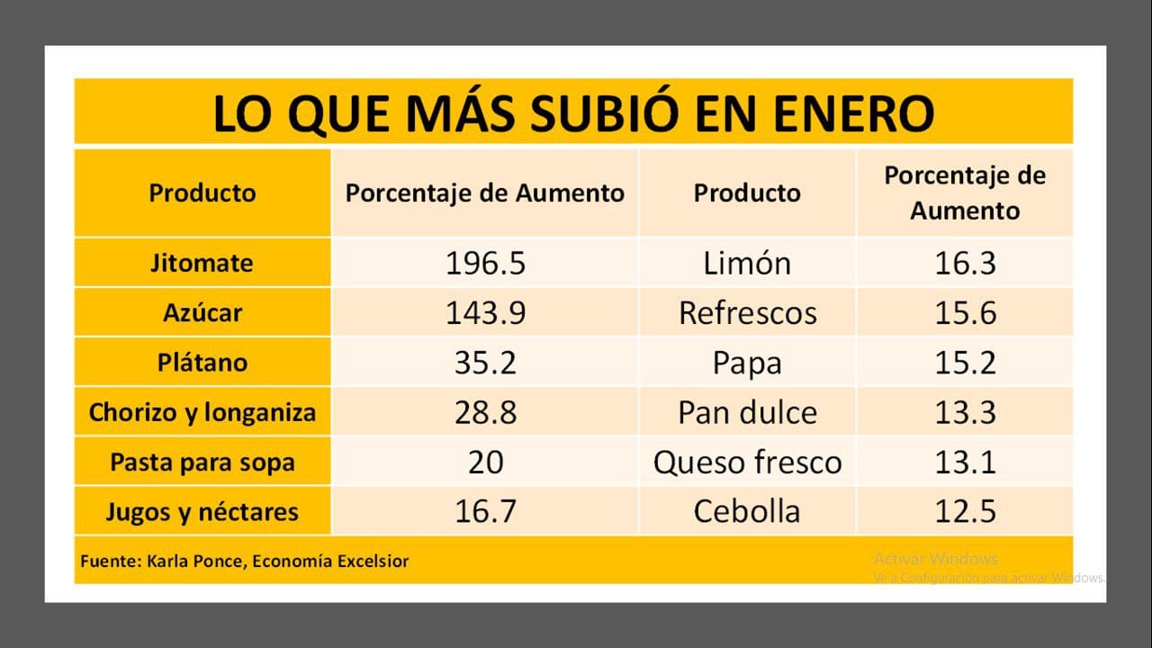 Dentro del índice subyacente, (evolución de los precios sin considerar energía nialimentos elaborados), la parte que incluye frutas y verduras incidieron en 1.135 puntos porcentuales en la inflación general con 23.24 por ciento, su cifra más alta reportada en enero (Reforma negocios 10.01.24).