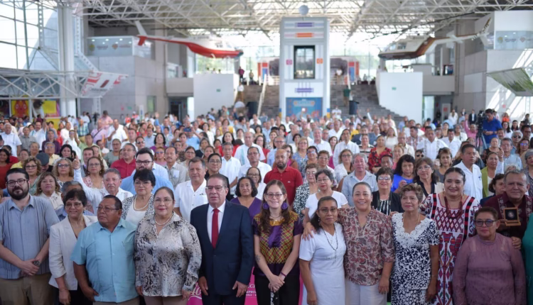 Encabezaron este acto la titular de la SEV, Claudia Tello Espinosa, y el subsecretario de Gobierno, José Manuel Pozos Castro. Asistieron también líderes de organizaciones sindicales y docentes de la entidad.