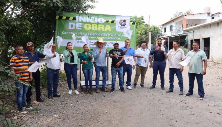 El presidente municipal Lic. Roberto Montiel Montiel encabezó el Banderazo de Inicio de Obra en la localidad de Hato de la Higuera, acompañado de la presidenta del DIF municipal Ing. Ely Montiel Grajales, la síndica Ing. Maritza Itzel Gutiérrez León, el regidor C. Arturo Palmeros Hernández, el tesorero Mtro. Fidel Ronzón Rodríguez, el secretario del ayuntamiento Lic. Carlos Ramón Salgado Vásquez, obra que consiste en la Construcción de Guarniciones y Banquetas a base de concreto hidráulico en la Calle Principal de esta localidad.
