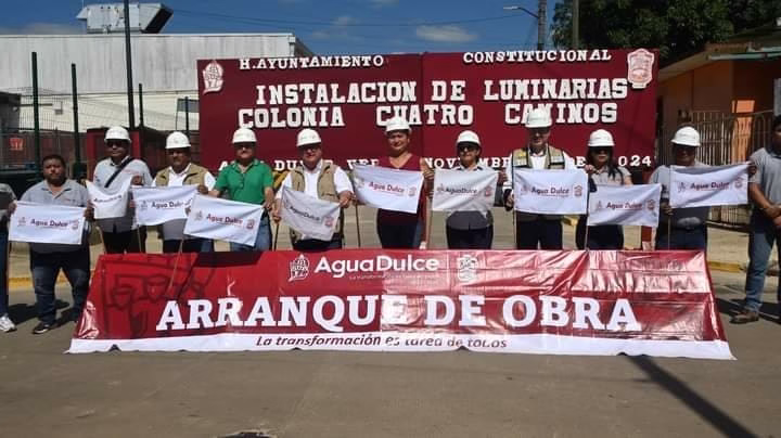 Agua Dulce, Ver. – Con el objetivo de brindar una mayor seguridad y bienestar social en la comunidad hidrómila el alcalde de la transformación, José Castillo Olvera, dio el banderazo de inicio al programa del cambio total de luminarias en la colonia Cuatro Caminos del municipio de Agua Dulce.