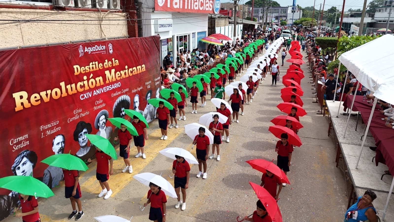 Con majestuoso Desfile, el Alcalde de la Educación, José Noé Castillo Olvera, conmemora el CXIV Aniversario de la Revolución Mexicana en Agua Dulce.