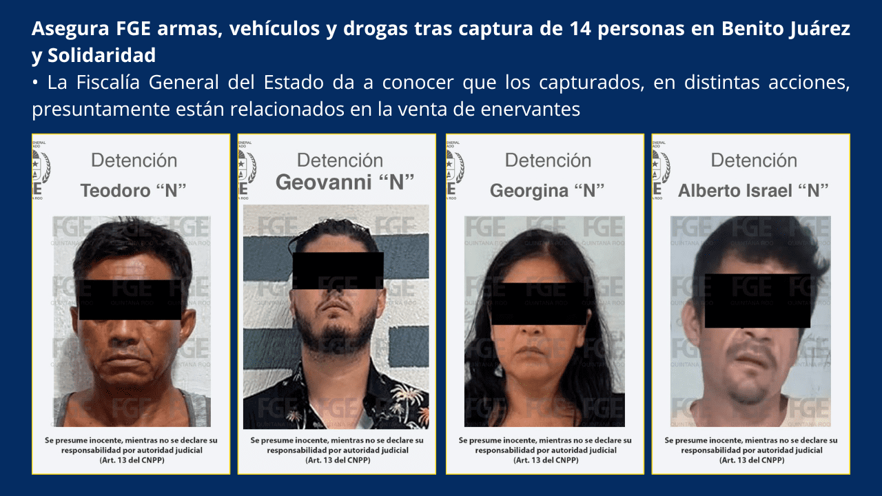 La Fiscalía General del Estado ha reportado importantes avances en la lucha contra el narcomenudeo, tras la captura de 14 individuos en operativos realizados en los municipios de Benito Juárez y Solidaridad. Los detenidos están presuntamente vinculados a la venta de sustancias ilegales, incluidas hierbas y cristales, que supuestamente son estupefacientes.