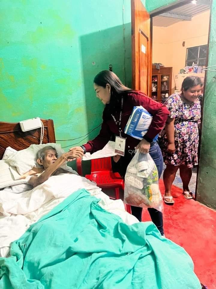Directora del DIF Municipal Lic. Mabel Luna Gallegos otorga de manera personal insumos a adultos mayores en estado de vulnerabilidad en Agua Dulce.