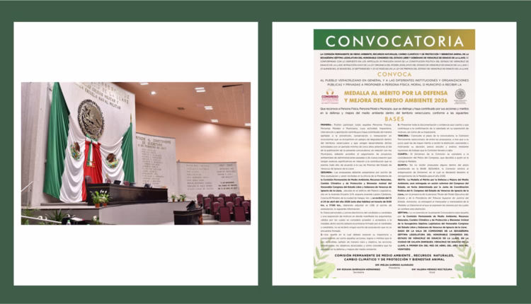 Xalapa, Ver., 13 de abril de 2026.- Con la finalidad de iniciar el procedimiento para elegir a la persona física o moral que haya contribuido con sus acciones a favor del medio ambiente, la Comisión Permanente de Medio Ambiente, Recursos Naturales, Cambio Climático y de Protección y Bienestar Animal de la LXVII Legislatura aprobó y emitió la convocatoria para el otorgamiento de la Medalla al Mérito por la Defensa y Mejora del Medio Ambiente 2026, distinción que entrega anualmente el Congreso del Estado.