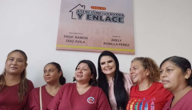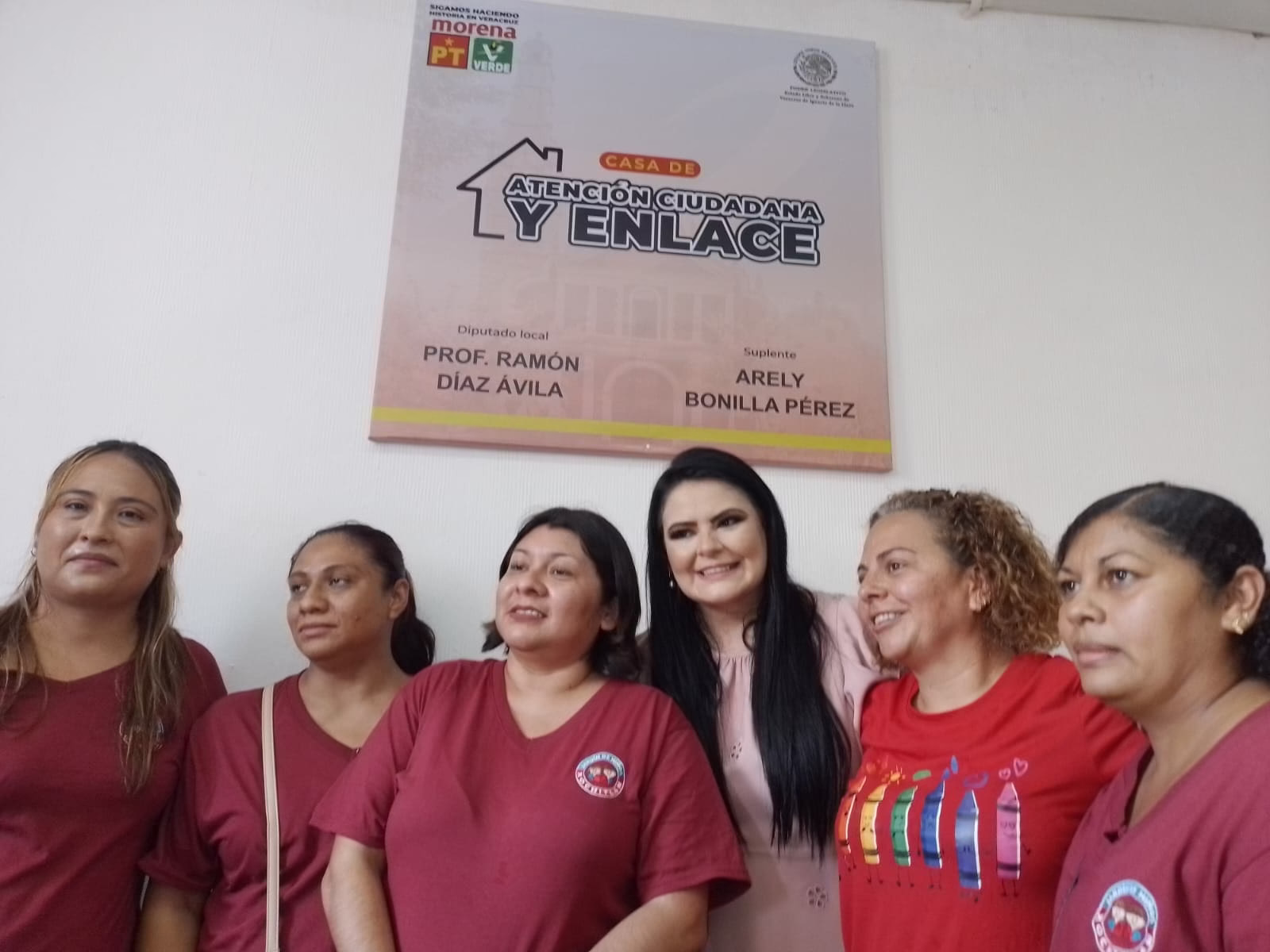 EN FUNCIONAMIENTO CASA DE ENLACE DEL DIP. RAMÓN DÍAZ. SU SUPLENTE ARELY BONILLA PÉREZ CORTA EL LISTO INAUGURAL.