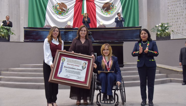 • En Sesión Solemne, la atleta paralímpica veracruzana recibe la medalla y el diploma por su ardua labor, liderazgo incluyente y trayectoria ejemplar.