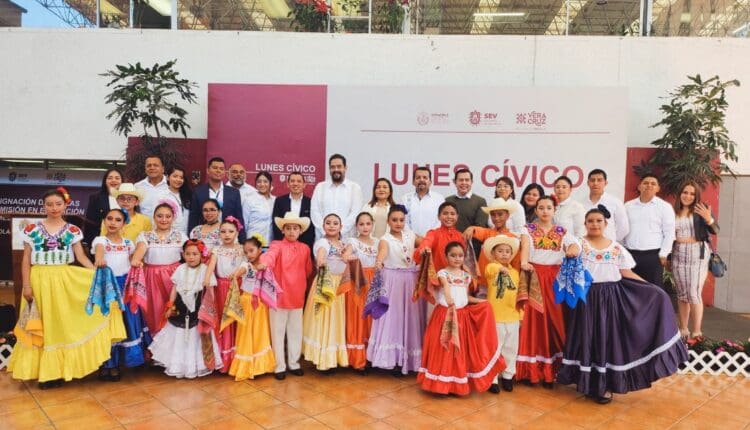 El alcalde Dr. José de Jesús Landa Hernández, felicita de manera muy especial al Ballet Tonati – Mestli y a la Banda de Guerra de la Escuela Primaria Federal «Rafael Ramírez» por su destacada participación en el Acto Cívico celebrado en la Secretaría de Educación de Veracruz!