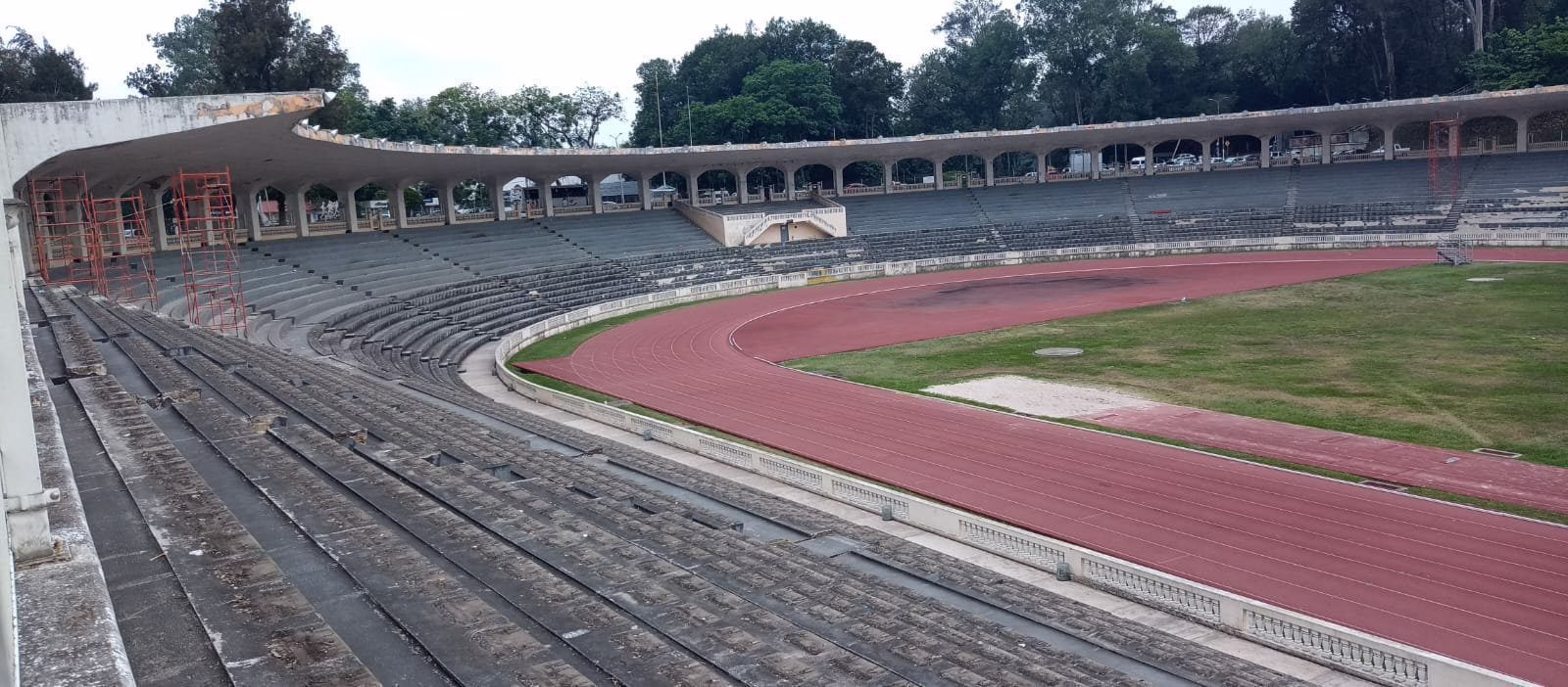Observamos, que hay estructuras metálicas, se han retirado los asientos, para dar paso, aún nuevo equipamiento, consideramos que lo va haber.