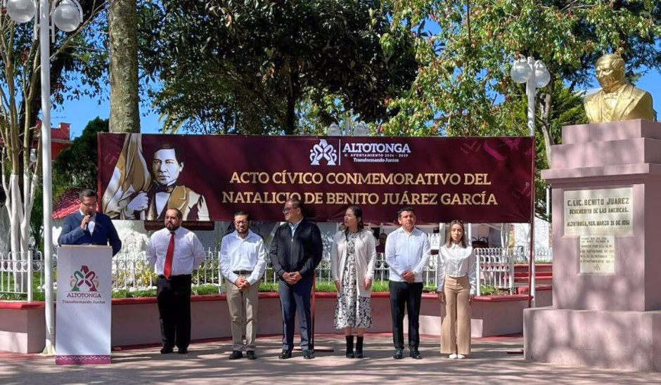 En el marco del 220 aniversario del natalicio de Benito Juárez García, se llevó a cabo un emotivo acto cívico conmemorativo en el municipio de Altotonga, contando con la destacada participación de la Telesecundaria Benito Juárez García, así como de autoridades municipales y personal educativo.