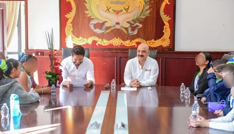 Xalapa, Ver.- El alcalde Ricardo Ahued Bardahuil recibió a estudiantes del Centro Educativo Siglo XXI, quienes representarán al estado y el municipio en el Torneo de Basquetbol Copa Inter Knotion 2024, que se celebrará en Morelia, Michoacán.