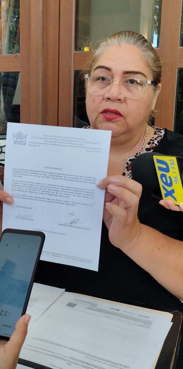 Alfredo Zúñiga Esperilla, Secretario General de la agrupación, con burlas se ha negado a entregarle la llave advirtiéndole que ya está dada de baja de la “Unión de Trabajadores Manufactureros de Curiosidades del Mar y Expendedores de Curiosidades en General del Puerto de Veracruz”, CTM.