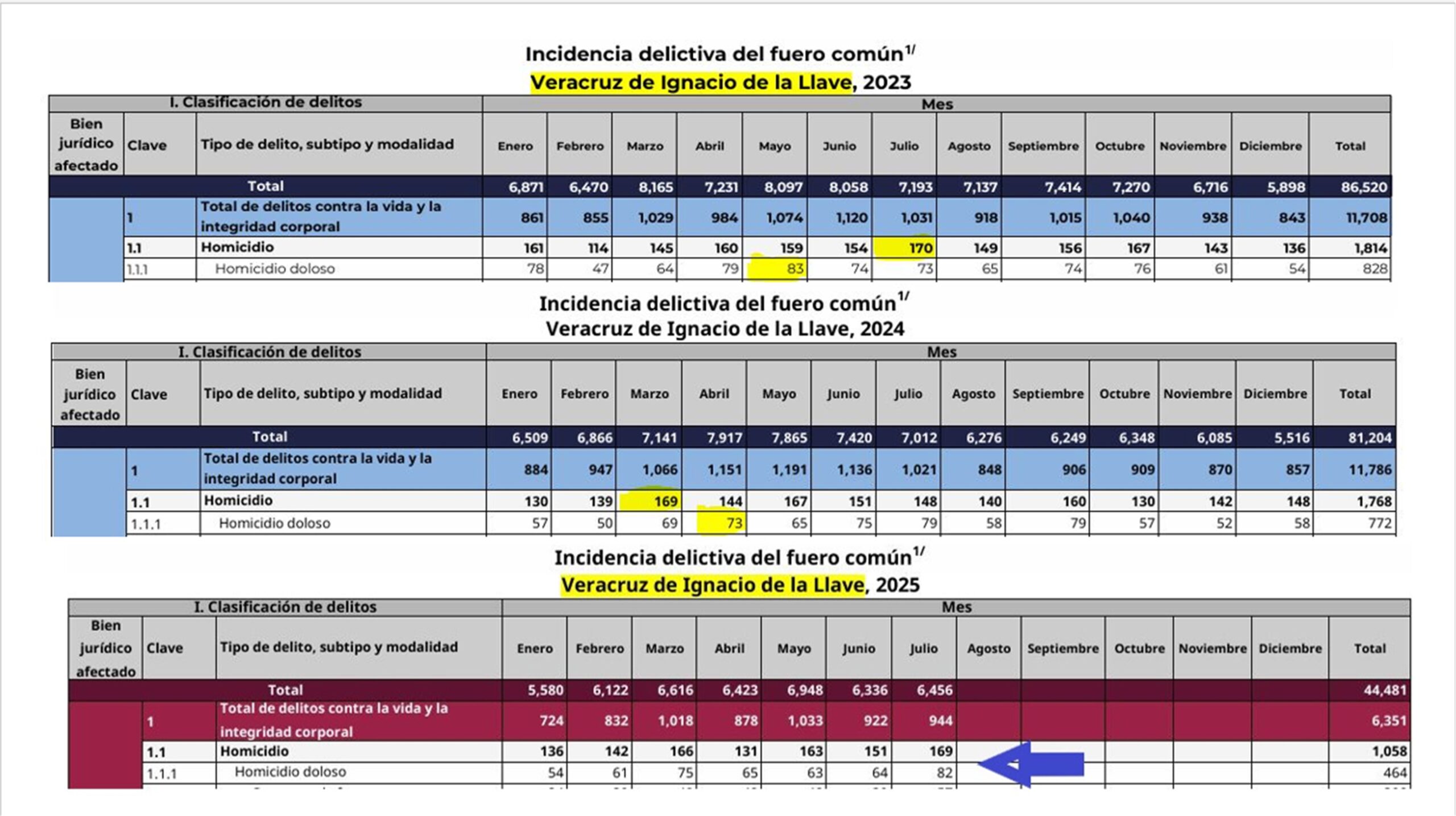 Las cifras mencionadas son precisamente las que arroja esta instancia, la cual (a su vez), reproduce los números que le reporta la Fiscalía General del Estado de Veracruz.