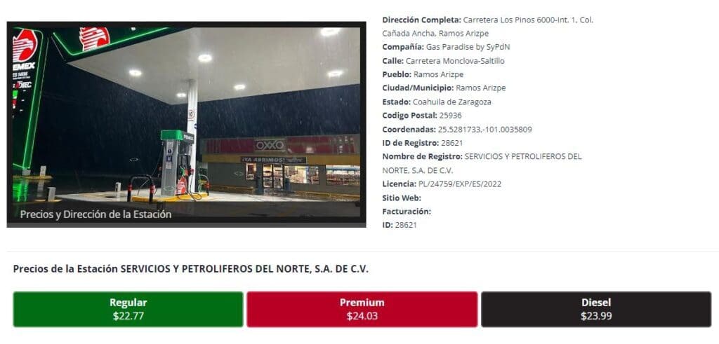 “Con una inversión de hasta 40 millones de pesos, Servicios Petrolíferos del Norte, S.A. de C.V., instaló en Ramos Arizpe su primera estación de servicio en la Región Sureste de Coahuila, llamada Gas Paradise, mientras que en el corto plazo proyecta instalar tres estaciones más en el área Saltillo-Ramos Arizpe”.