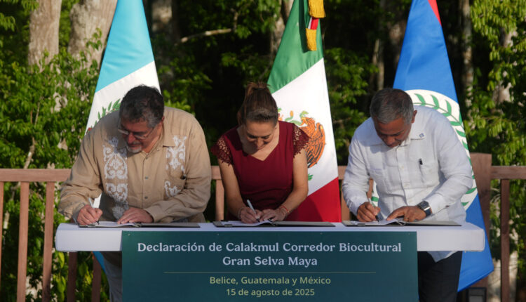 En un esfuerzo trinacional sin precedente, la presidenta de México, Claudia Sheinbaum Pardo, el presidente de la República de Guatemala, Bernardo Arévalo de León, así como el primer ministro de Belice, Juan Antonio Briceño, firmaron la declaración conjunta que crea el Corredor Biocultural Gran Selva Maya.