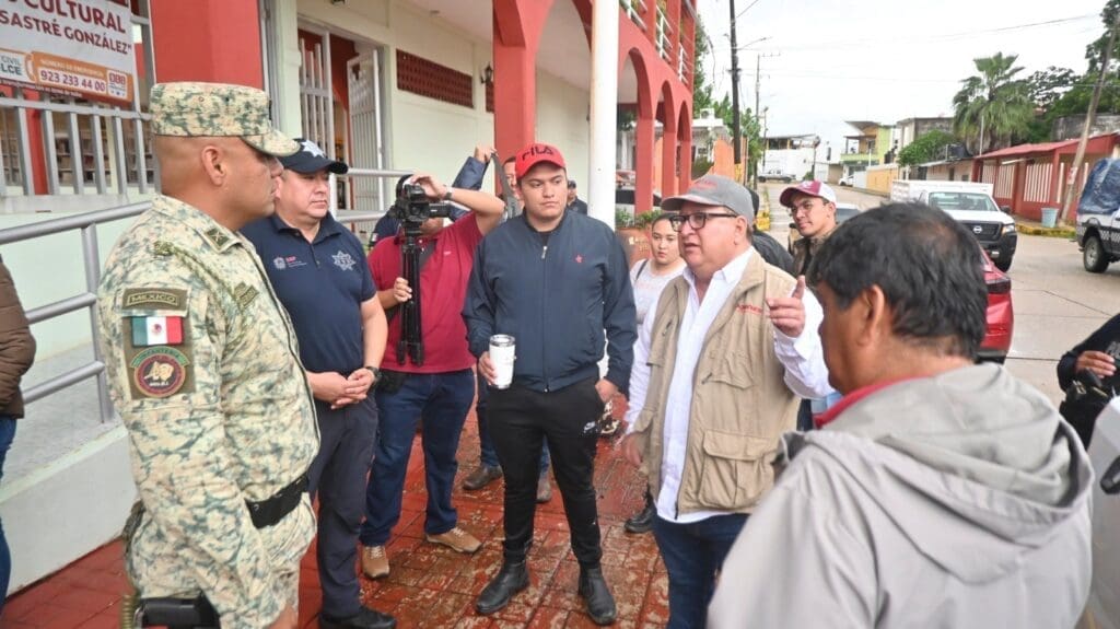 Noé Castillo Olvera realiza recorridos en los diferentes refugios temporales acompañados de elementos de diversas corporaciones en Agua Dulce.