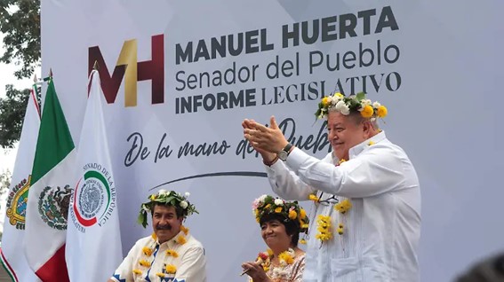 Protestas interrumpen informe del senador Manuel Huerta en Parque Juárez