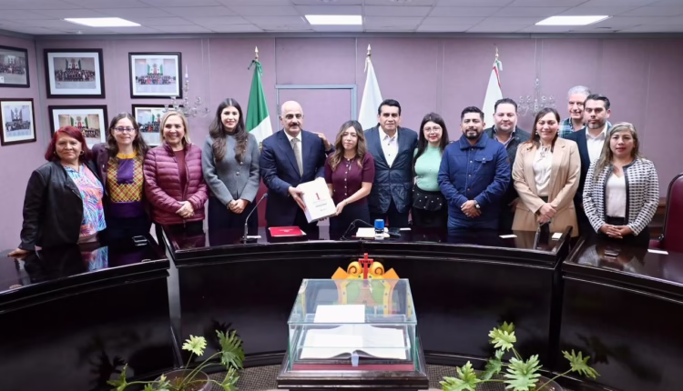 Xalapa, Ver., 15 de noviembre de 2025.- En representación de la LXVII Legislatura, la Mesa Directiva, presidida por la diputada Naomi Edith Gómez Santos, y el presidente de la Junta de Coordinación Política (Jucopo), diputado Esteban Bautista Hernández, recibieron del titular de la Secretaría de Gobierno (Segob) del estado, Ricardo Ahued Bardahuil, el Primer Informe de Gobierno de la administración encabezada por la ingeniera Rocío Nahle García.