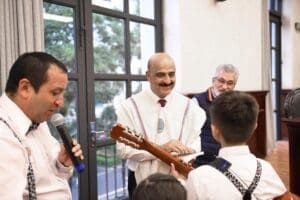 Xalapa, Ver.- El presidente municipal Ricardo Ahued Bardahuil recibió en la Sala de Cabildo a los estudiantes de la escuela “Guitarras de San Juan Bautista”, originarios del municipio de La Vega Cundinamarca, Colombia.