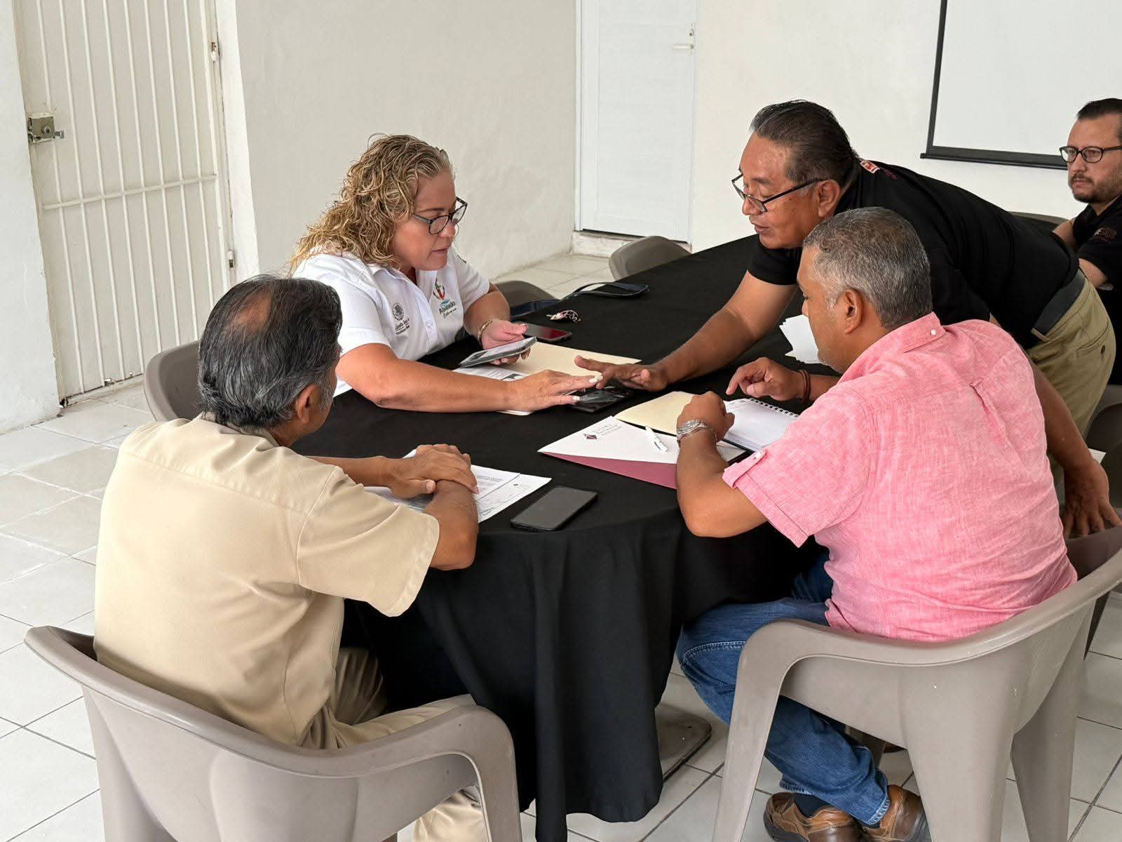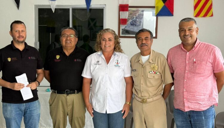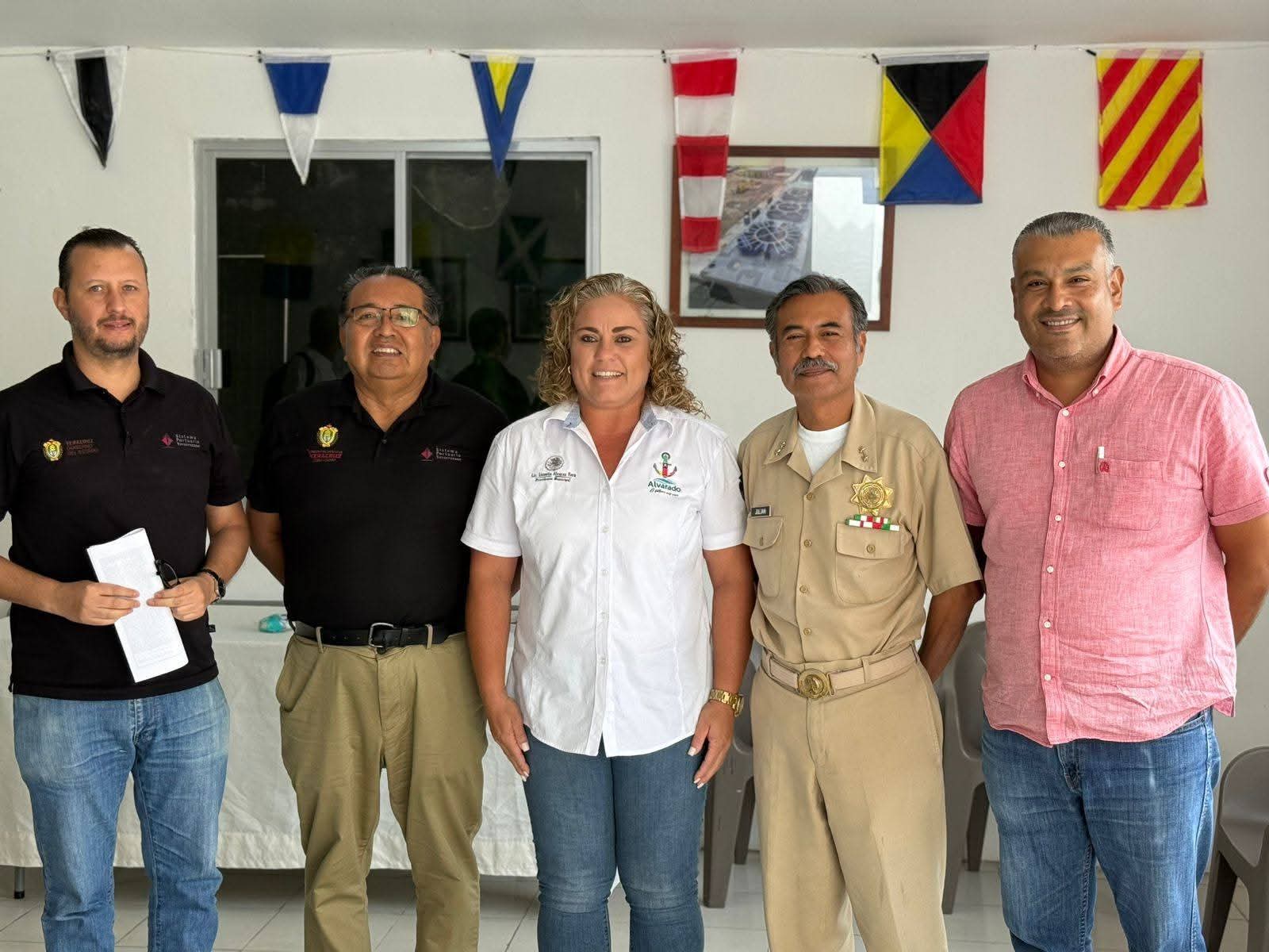 Alvarado, Ver.- La presidenta municipal, Lizzette Alvarez Vera, sostuvo una reunión con personal del Sistema Portuario Veracruzano y de Capitanía de Puerto, para dar seguimiento al proyecto de reubicación de la torre de transmisión de alta tensión eléctrica ubicada en la desembocadura del río Papaloapan.