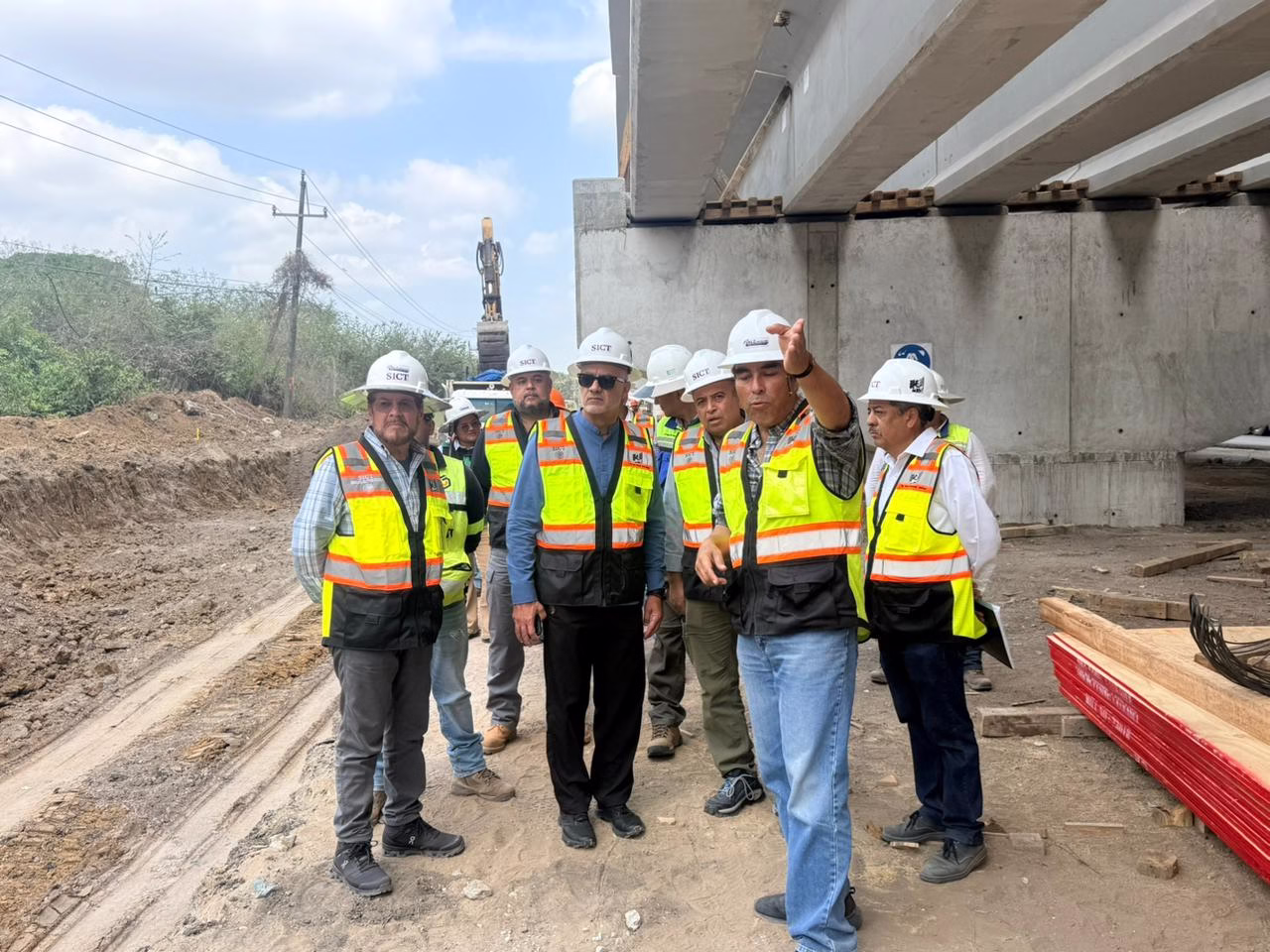 En el recorrido también participó el director general del Centro SICT Veracruz, Luis Manuel Pimentel, así como los ingenieros residentes responsables del proyecto, quienes detallaron el progreso alcanzado y las acciones que actualmente se ejecutan en los diferentes frentes de construcción.
