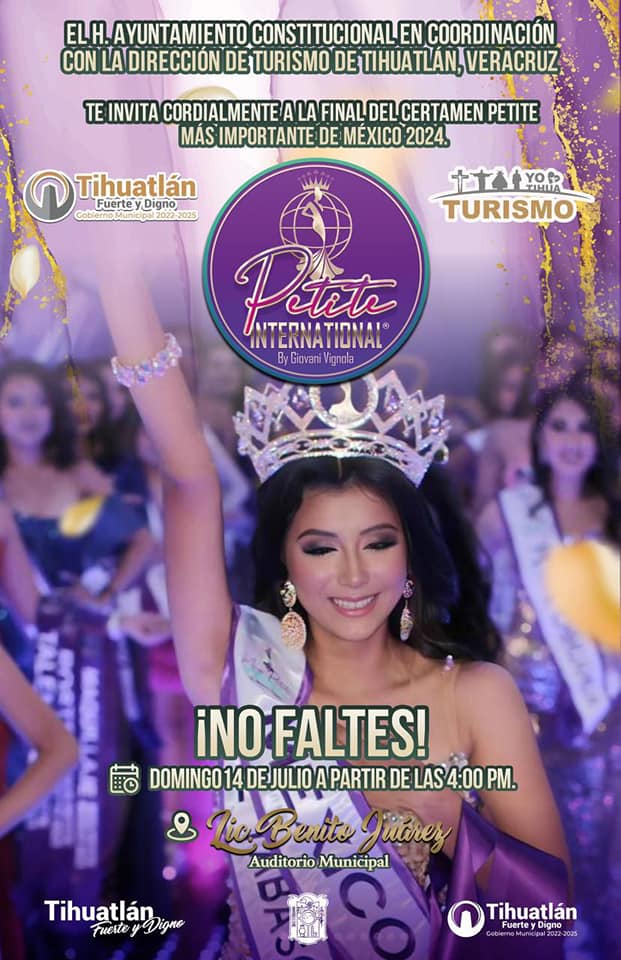 El certamen Miss Petite International 2024 promete ser un evento inolvidable, donde se celebrará la elegancia y la gracia de las participantes, así como la hospitalidad y belleza de Tihuatlán, Veracruz.