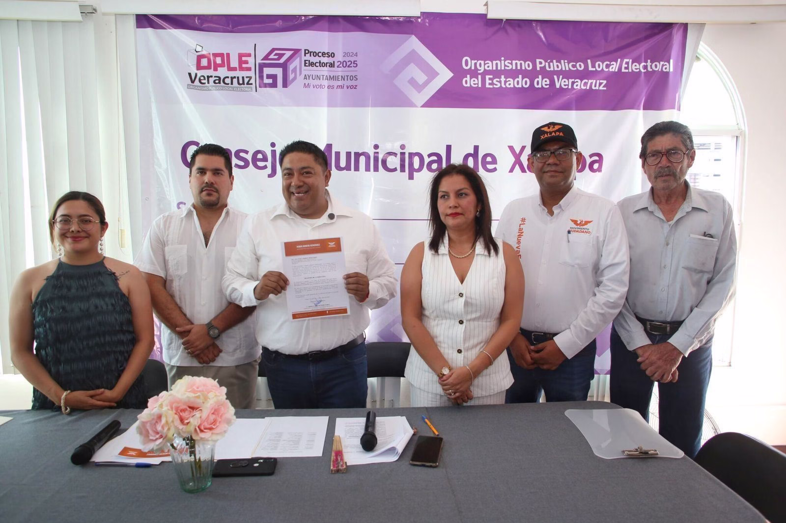 Xalapa, Ver. — En un ambiente de entusiasmo y esperanza, Román Moreno formalizó su registro como candidato a la presidencia municipal de Xalapa ante el Consejo Distrital del Organismo Público Local Electoral (OPLE). Lo acompañaron integrantes de su planilla, militantes y simpatizantes que, entre porras y aplausos, le expresaron su respaldo.